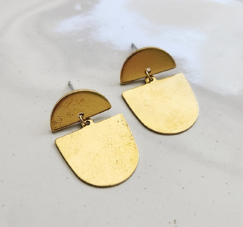 Measuring an inch long, these brass dangle earrings have stainless steel posts, making them hypoallergenic.